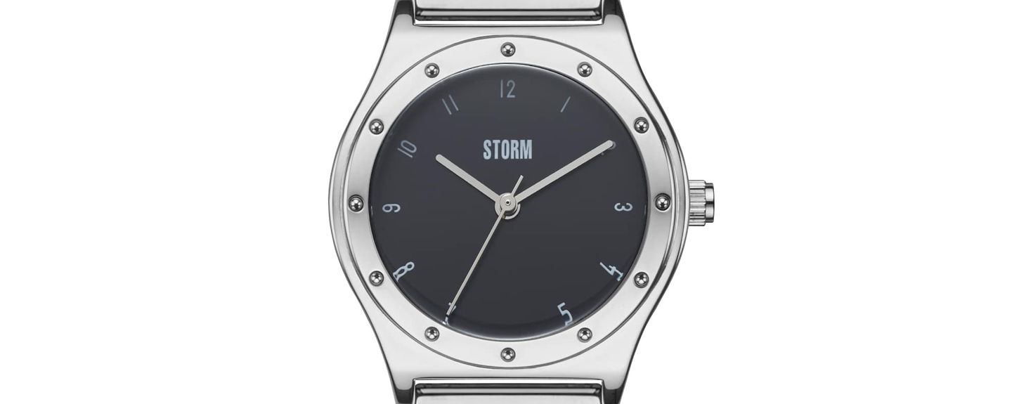 Setzen Sie ein selbstbewusstes Statement im Alltag mit der STORM Marlena. Das schwarze Zifferblatt in einem polierten Edelstahlgehäuse mit Halbspangen-Armband verkörpert moderne Zurückhaltung. Zwölf Stahl-Nietenmarkierungen akzentuieren das minimalistische Design. Bis 50 m wasserdicht – perfekt für stilbewusste, zeitgemäße Looks.