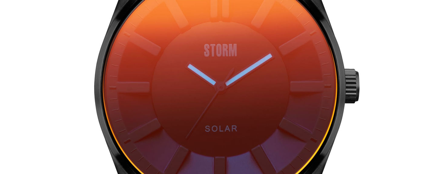 Die STORM Solaron in IP-Beschichtung setzt ein starkes Statement. Das 3D-Zifferblatt unter dem charakteristischen Lazer-Red-Glas wird durch nachhaltige Solartechnologie betrieben. Keine Batteriewechsel erforderlich – einfach Licht nutzen. Leuchtzeiger und 50 m Wasserdichtigkeit sorgen für Funktionalität im Alltag.